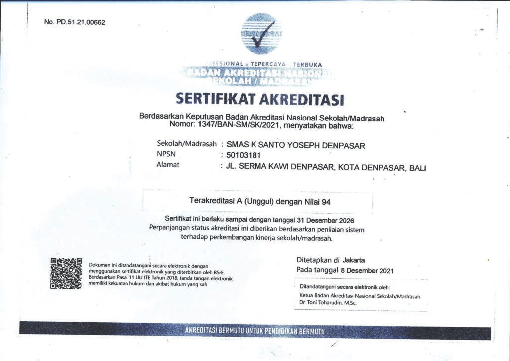 Perjalanan panjang kami dalam dunia pendidikan, dari awal berdiri hingga menjadi institusi yang dipercaya. SMAK SANTO YOSEPH (SWASTIASTU) Didirikan 1 Agustus 1964 Di bawah naungan “ YAYASAN SWASTIASTU”, didirikan oleh Romo Herman Embueru, SVD.